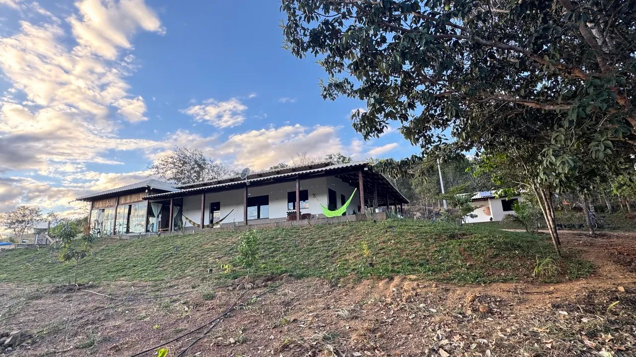 É uma casa com 400m de área construída, semi nova a construção, lugar seguro é fresquinho o ano todo.